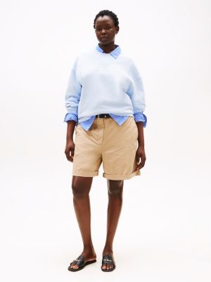 An embroidered script logo and pique fabric give this stylish crew-neck sweatshirt a fresh look and elevated feel.