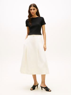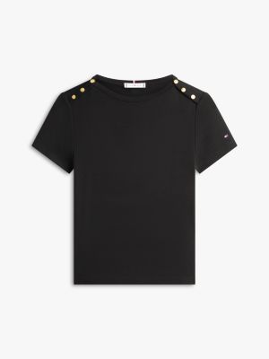 This silky slim-fitting T-shirt with a boat neck and gold-tone shoulder buttons brings a touch of glamour to casual dressing.