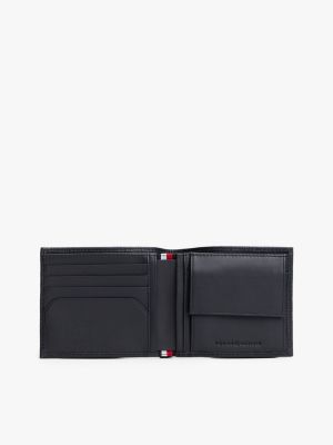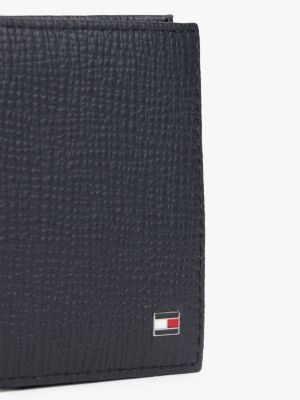 This premium bifold wallet features a textured saffiano leather finish and offers multiple compartments for cash and cards.
