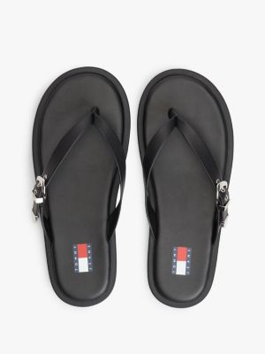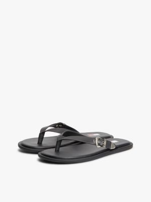 These leather flip-flops are a sunny-day essential, featuring a serif script logo-debossed buckle on the strap for an edgy vibe.