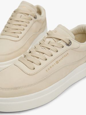 Traditional court trainers inspire this lace-up design, crafted from nubuck leather with a smooth finish for a luxe feel.