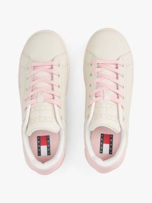 These tonal leather trainers with badge detailing are given a contemporary twist courtesy of the statement platform soles.
