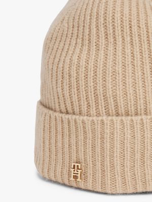 Keep luxuriously warm in this pure cashmere beanie, complete with a TH monogram plaque on the cuff for low-key glamour.
