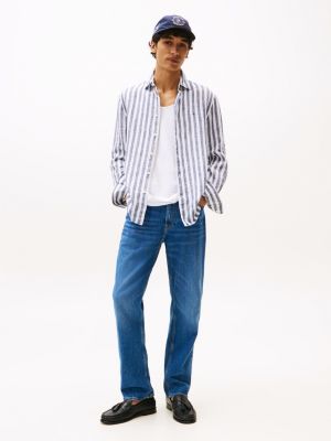 This regular-fit shirt is decorated with classic stripes for a timeless look, while the linen fabric gives it a breezy feel.