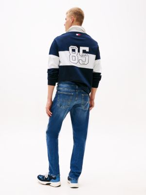 These jeans are tailored in a slim fit with a timeless straight leg, designed to flatter while offering room to move. The mid-weight fabric is indigo-dyed for depth of colour and a soft handfeel with lasting structure, enduring wear after wear. Power stretch in the denim provides flexible comfort, adapting to urban commutes or relaxed downtime. A classic five-pocket design and signature Tommy Jeans branding on the back offer an authentic look, while a zip fly with button closure delivers straightforward functionality. Fading and clean lines complete these jeans with the brand's refined sensibility, ensuring they remain a versatile staple in your denim collection.
