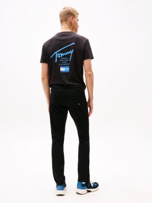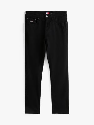 The Scanton slim-fit jeans are tailored to provide a refined, streamlined profile without compromising on comfort. The carefully balanced stretch fabrication allows for ease of movement, so they feel as good as they look throughout the day. Mid-weight black denim offers both durability and a polished appearance, making them easy to dress up or style down. Tonal signature branding on the back patch adds a distinct Tommy Jeans finish, ensuring the pair remain understated yet recognisably premium. The classic five-pocket configuration provides timeless functionality, offering ample storage and an authentic denim feel. Double flag patches offer a pop of colour against the solid black wash.