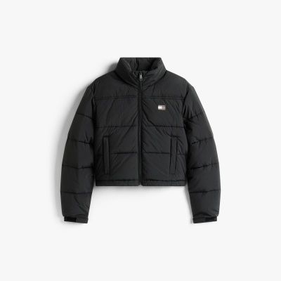 This puffer jacket showcases a statement streetwear aesthetic, with its relaxed fit and tonal Tommy flag badge embroidery on the back.