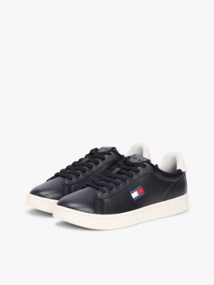 Deze sportieve leren sneakers met een Tommy-badge hebben een strak, laag ontwerp voor een tijdloze vibe.