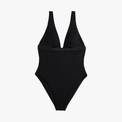 Dit flatteuze badpak met diepe halslijn en hoge beenuitsnijding heeft een elegante finish met een ton-sur-ton logo op de onderbusteband.