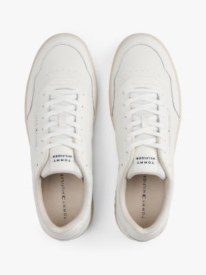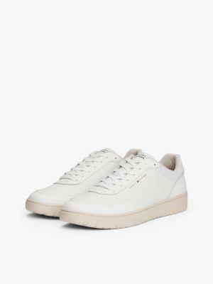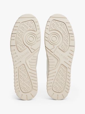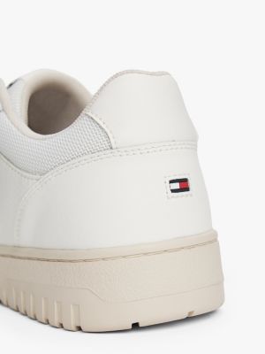Deze vetersneakers van glad leer hebben een chunky profielzool en gemengde texturen voor een retro basketbalvibe.