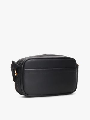 Deze praktische cameratas combineert een moderne vorm met glanzende hardware, een logotape-detail en een verstelbare crossbodyband.