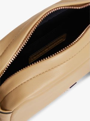 Deze praktische cameratas combineert een moderne vorm met glanzende hardware, een logotape-detail en een verstelbare crossbodyband.