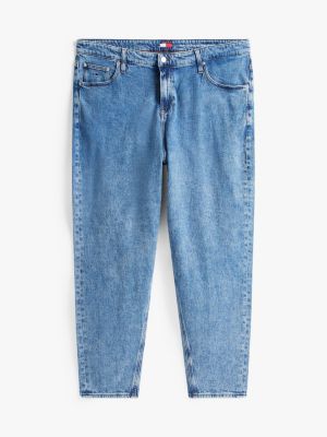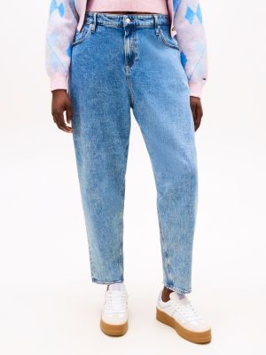 Geef je denimcollectie een authentieke update met deze flatteuze mom jeans van stretchdenim met toelopende broekspijpen.