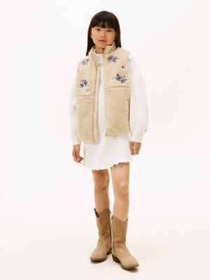 Deze jurk met een cosy opstaande hals heeft geborduurde bloemetjes op de voor- en achterkant voor een fleurig detail.