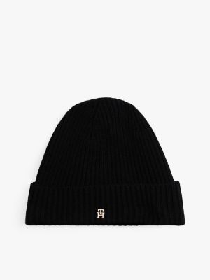 Deze beanie van zuivere kasjmier met een metalen TH-monogram op de omslag houdt je stylish warm.