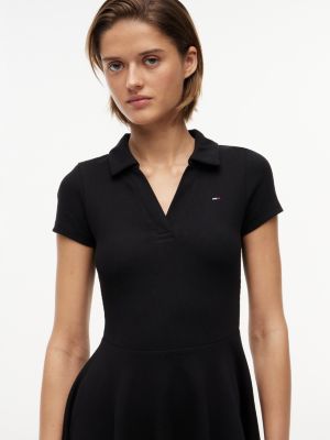 Deze flatterende geribde fit-and-flare mini-jurk met een sportief polodesign is het perfecte item voor zonnige dagen.