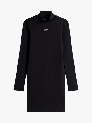 Deze mini-jurk heeft een aansluitende bodycon fit en een relaxed opstaande hals als cosy finish.