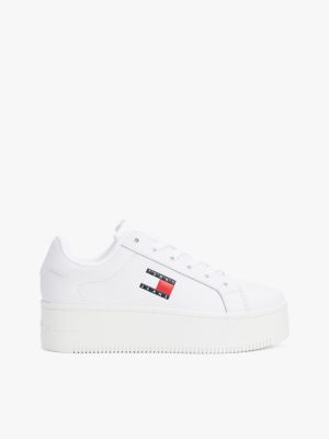 Deze ton-sur-ton leren sneakers met een logo-badge hebben een eigentijdse vibe door de platformzolen.
