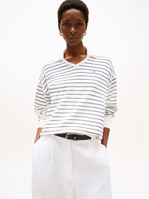 Geef je knitwearcollectie een sportieve touch met deze trui met een moderne open polokraag en een relaxed silhouet met verlaagde schouders.