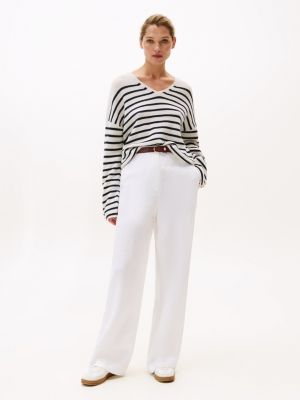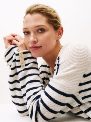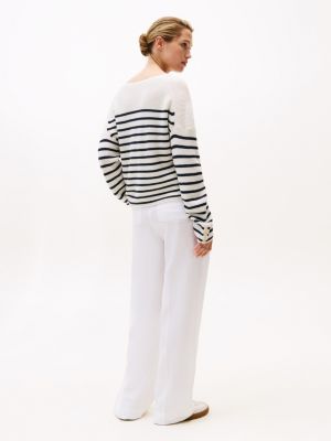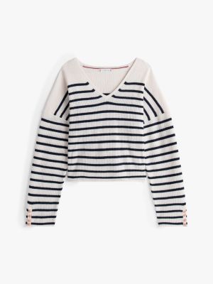 Geef je outfit een moderne en maritieme touch met deze cropped relaxed fit trui met dropped shoulders.