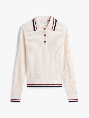 Relaxed kabelgebreide polotrui met kasjmier