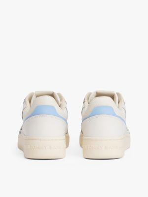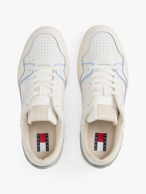 Ga voor een retro vibe met deze luxe leren sneakers in basketbalstijl met contrasterende kleurdetails.