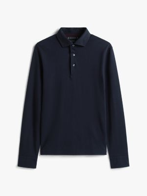 Dit slim fit poloshirt van luxe piqué katoen heeft lange mouwen met manchetten en is het perfecte midden tussen smart en casual.
