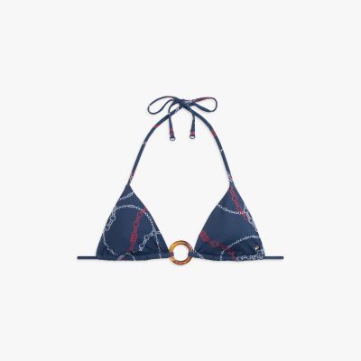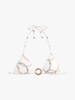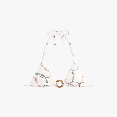Bij deze bikinitop met een ringdetail verander je zelf makkelijk de pasvorm door de bandjes anders te strikken of de vulling eruit te halen.