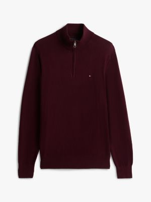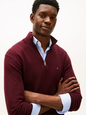 Deze trui met een korte rits en een subtiele geborduurde vlag is gemaakt van luxe en warm Pima-katoen met een beetje kasjmier.
