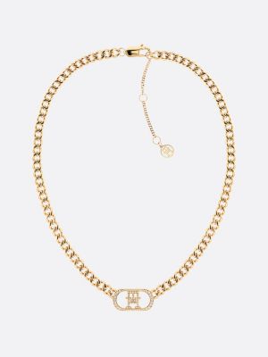 De met kristallen bezaaide TH-monogrambedel in het midden van deze stijlvol vergulde schakelketting geeft al je outfits een sprankelende touch.